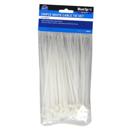 Blue Spot Tools Cable Ties are heavy-duty, self-locking and ideal for use around the home and workplace. Features a resealable bag for quick and convenient storage and use. Manufactured from heat resistant nylon 66. Each pack contains 100 black cable ties.